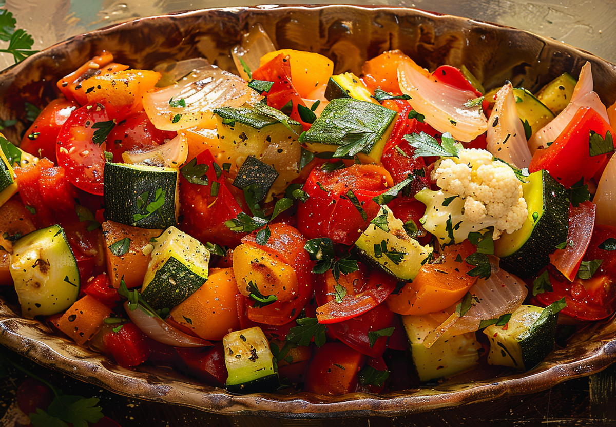Это блюдо низкокалорийное, богато клетчаткой и витаминами. Оно отлично подходит для похудения, так как насыщает надолго и не перегружает организм лишними калориями. Подавайте тушеные овощи как самостоятельное блюдо или как гарнир к куриной грудке или рыбе. На 100 г всего 45 ккал.