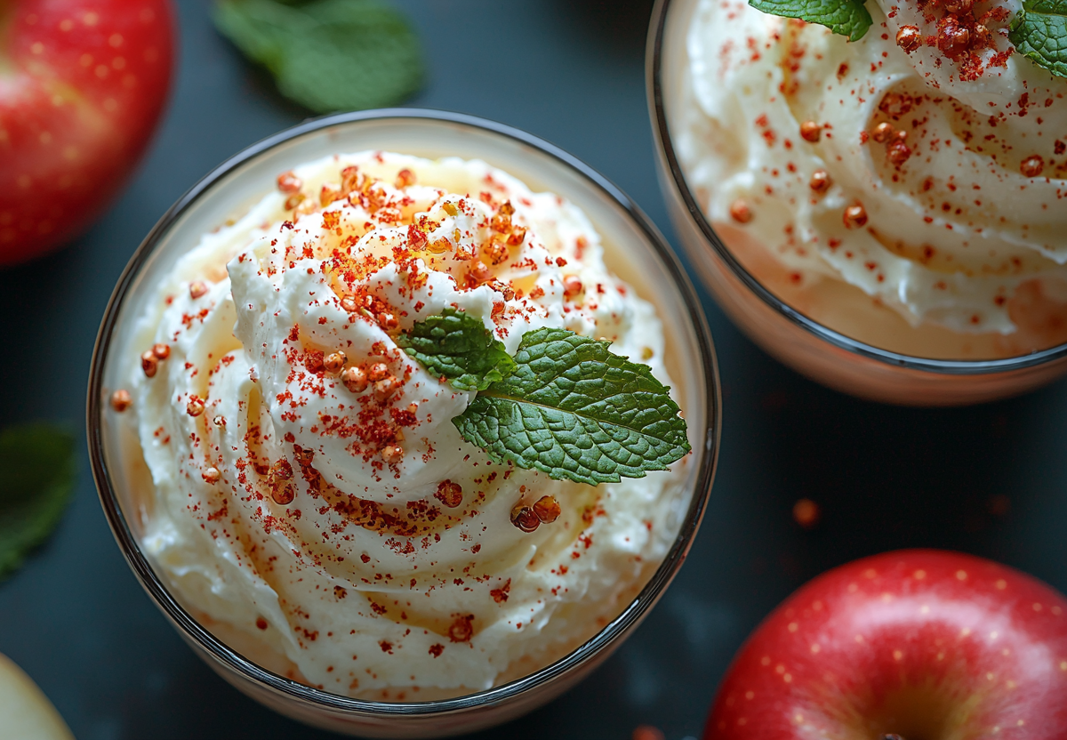 Быстрый и полезный рецепт можно приготовить из яблок, сметаны и мяты. Он получится нежным, с интересным оттенком и не навредит фигуре — всего 122 ккал на 100 г.