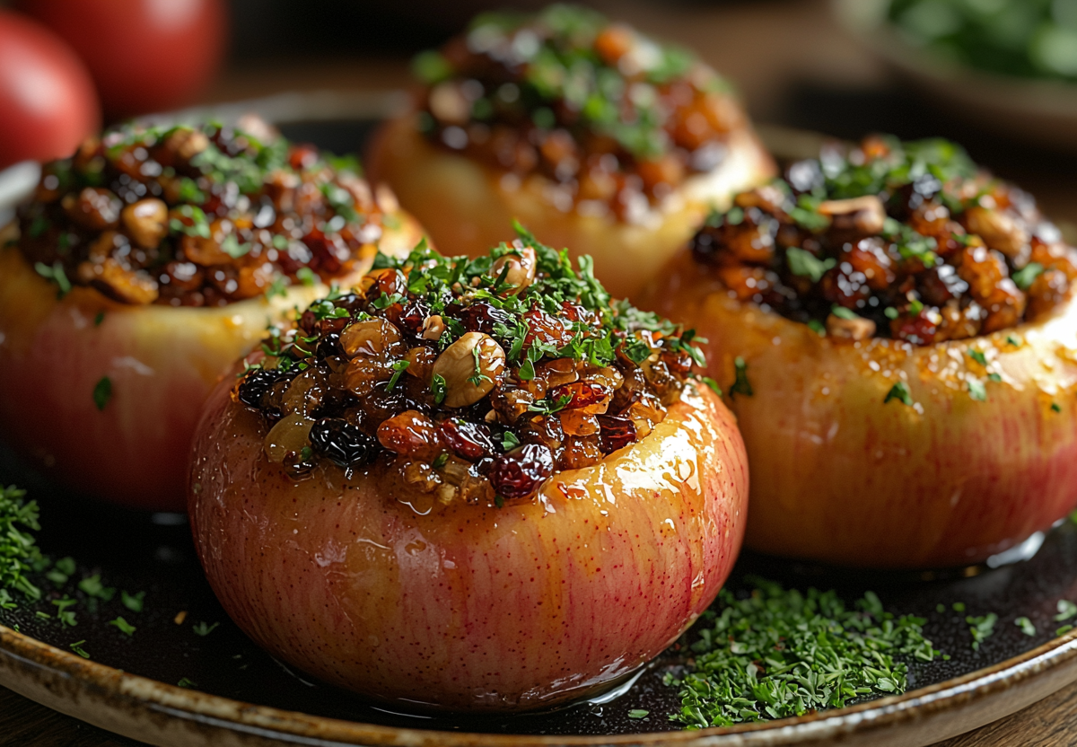 Для приготовления возьмите 4 яблока, 70 г грецких орехов, 2 чайные ложки изюма, 2 столовые ложки меда и корицу по вкусу.