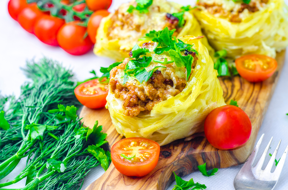 Если макароны по-флотски для вас — слишком простое блюдо, предлагаем приготовить макаронные гнезда с фаршем под сливочным соусом в духовке.