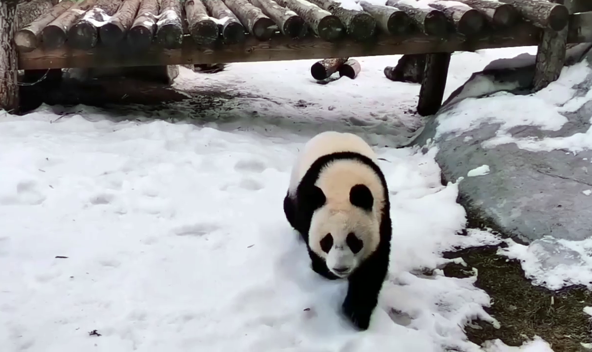 Панда Катюша из Московского зоопарка радуется апрельскому снегу в своем вольере, пишет гендиректор Московского зоопарка Светлана Акулова. На опубликованных ею кадрах можно увидеть, как бамбуковый медвежонок копошится в маленьких сугробах, катается и неуклюже забирается на деревянные брусья.