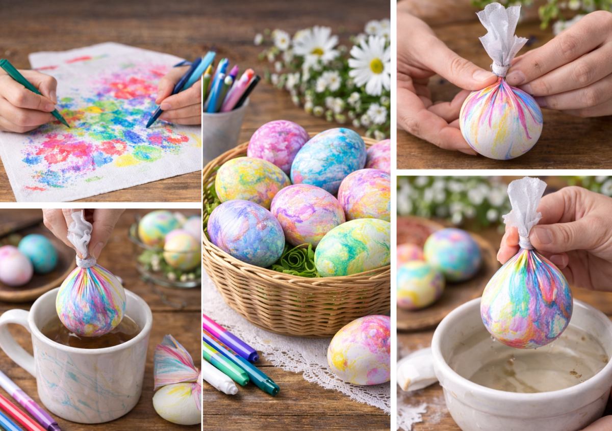 Гости сначала не верят, что это обычные маркеры и бумажные полотенца, а не дорогие наборы для декора. А потом просят показать, как это делается, — потому что выглядит эффектно и очень по-весеннему.