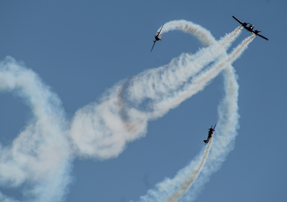На борту самолётов была установлена уникальная автоматизированная система, которая контролирует время и длительность выпуска масла, позволяя рисовать в небе любой текст.