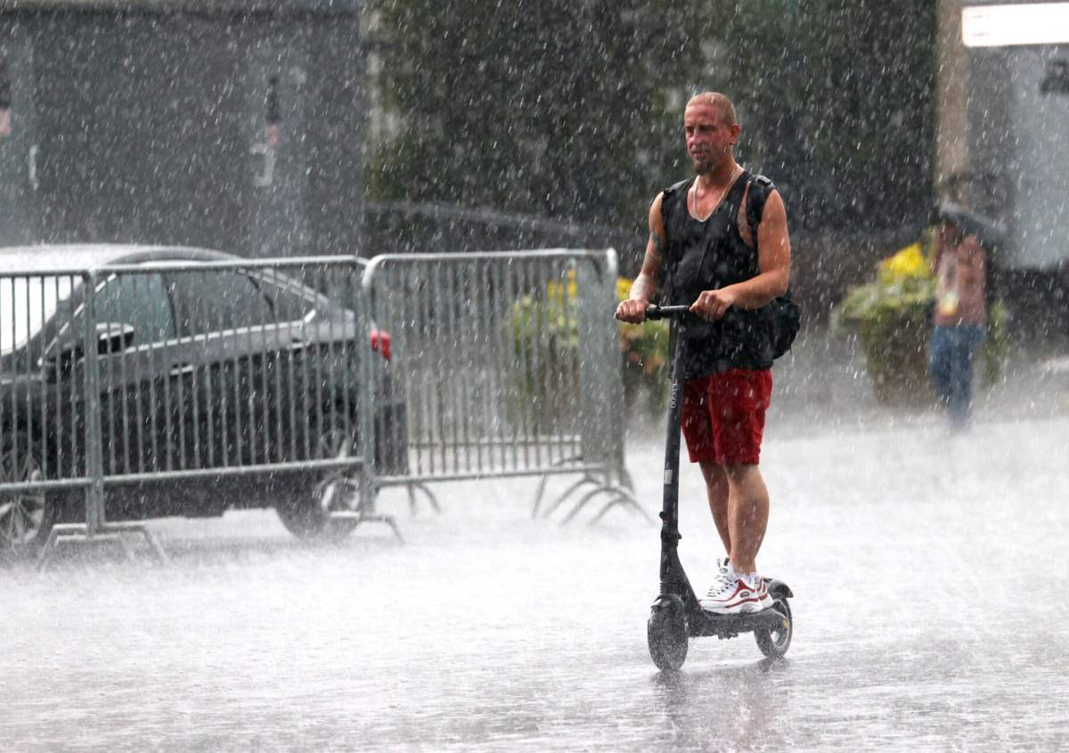 Водители электросамокатов подвергают свою жизнь большой опасности при езде в дождливую погоду, говорится в Telegram-канале МЧС России. В ведомстве не рекомендовали передвигаться на одном транспортном средстве нескольким людям одновременно.