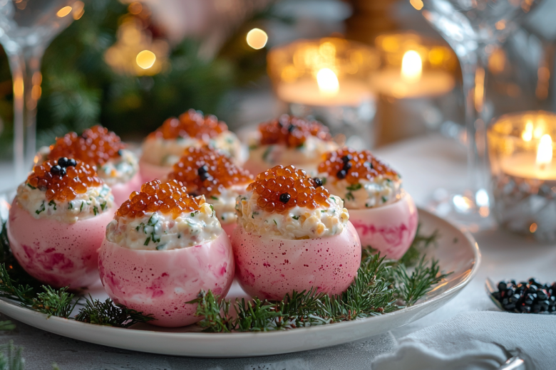 Готовим фаршированные розовые яйца на новогодний стол. Это изумительная закуска из бюджетных продуктов, которая бесспорно привлечет внимание каждого гостя.