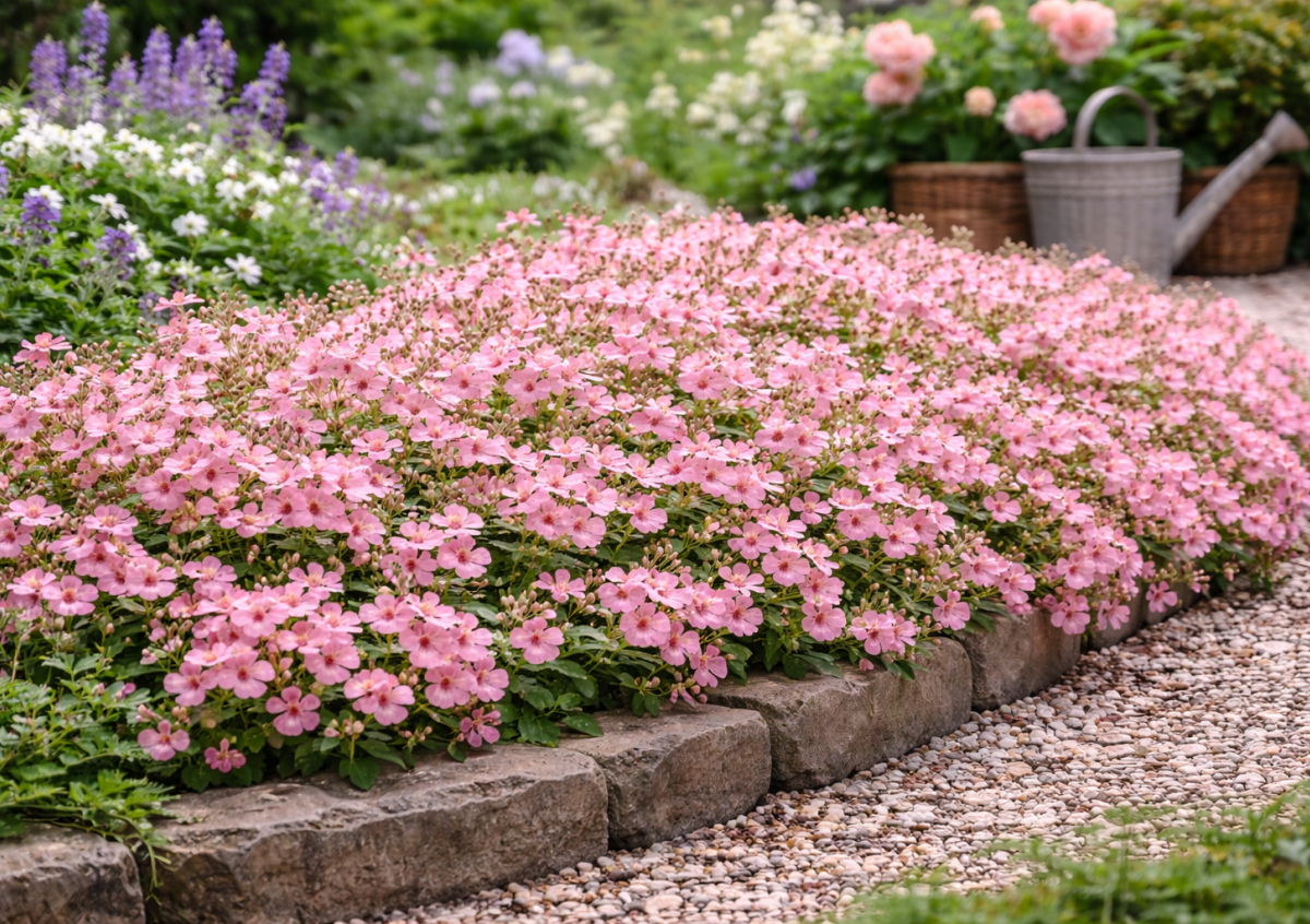 Регулярное удаление увядших цветков помогает сохранить декоративность до поздней осени. Диасция отлично подходит для подвесных корзин, балконных ящиков, бордюров и оформления дорожек, создавая легкое, воздушное настроение в саду и на террасе.