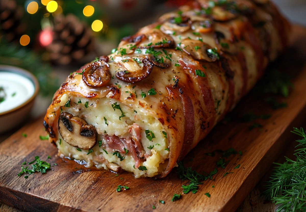 Рулет «Праздничный» на Новый год: обалденная закуска с пюре и беконом — такую вы точно не пробовали. Хотите удивить гостей изысканной горячей закуской? Этот рулет станет настоящей звездой вашего стола! Сочетание ароматных шампиньонов, сырокопченого бекона и нежного картофеля создает неповторимый вкус. Идеальное блюдо для торжественного случая — красиво, сытно и невероятно вкусно.