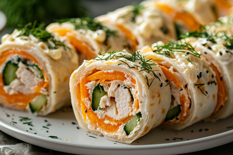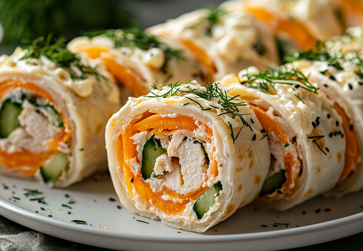 Рулетики из лаваша с копчёной курицей и морковчой: идеальная закуска для любого случая. Эти рулетики сочетают нежность курицы, пикантность корейской моркови и свежесть огурцов. Готовятся за 15 минут, а исчезают мгновенно!