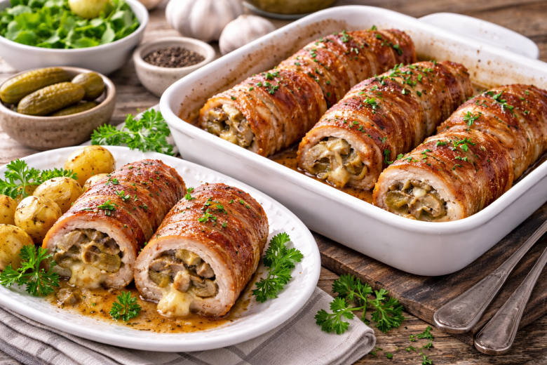 Если надоели обычные котлеты и гуляш, попробуйте приготовить сочные свиные рулетики. Делается все быстро: начинку собрали, мясо свернули — а дальше духовка сделает свое дело. В итоге получается ароматное, мягкое и очень сытное блюдо, которое одинаково хорошо подойдет и для семейного обеда, и для гостей.