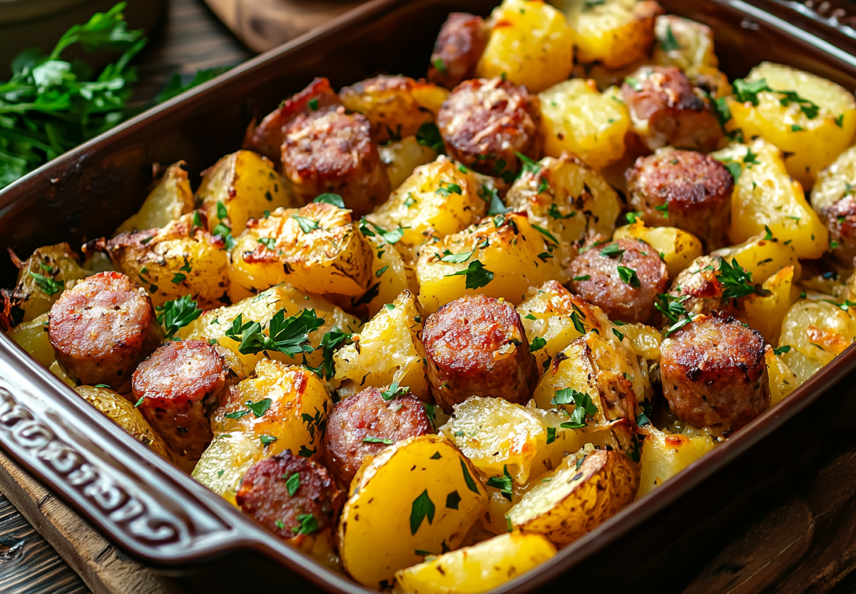 Хотите сытный и ароматный обед из минимума продуктов, да так, чтобы не стоять у плиты? Попробуйте это простое блюдо с картошкой и охотничьими колбасками. Поверьте, и мужчины, и дети будут довольны!
