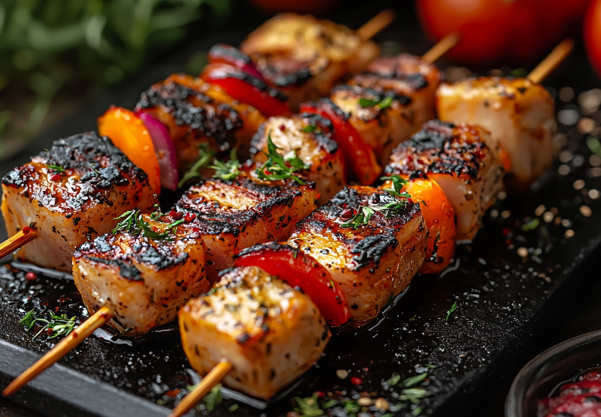 Не пережаривайте рыбу — она должна оставаться сочной внутри. Подавайте с зеленым салатом и дольками лайма. Эти шашлычки — настоящий взрыв вкуса, который удивит даже самых привередливых гурманов!