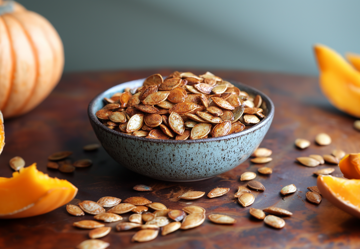 Вместо конфет попробуйте тыквенные семечки, а чтобы добавить пикантности, обжарьте их с кайенским перцем, карри и приправой чипотле. Также можно добавить мускатный орех, корицу и гвоздику.