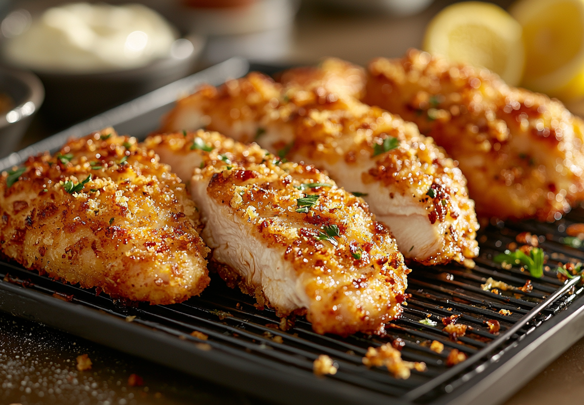 Подаем с дольками лимона и зеленым салатом. Этот рецепт — спасение для работающих мам, студентов и всех, кто любит вкусно поесть без долгой готовки. Попробуйте — и обычная куриная грудка станет вашим коронным блюдом!