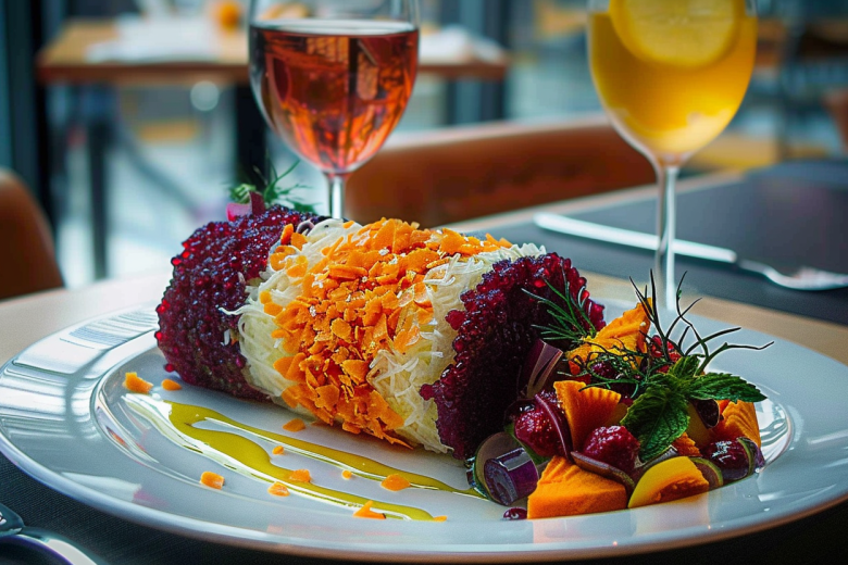 Салат-рулет «Хлопушка» — это именно то блюдо, которое создает новогоднее настроение! Яркие слои, напоминающие конфетти, и неожиданное сочетание вкусов делают его настоящим праздником в тарелке. Когда разрезаешь этот рулет, открывается фейерверк текстур — нежная курица, хрустящие орехи, сладкий гранат. Это тот случай, когда простое приготовление дает потрясающий результат, способный удивить даже искушенных гостей.