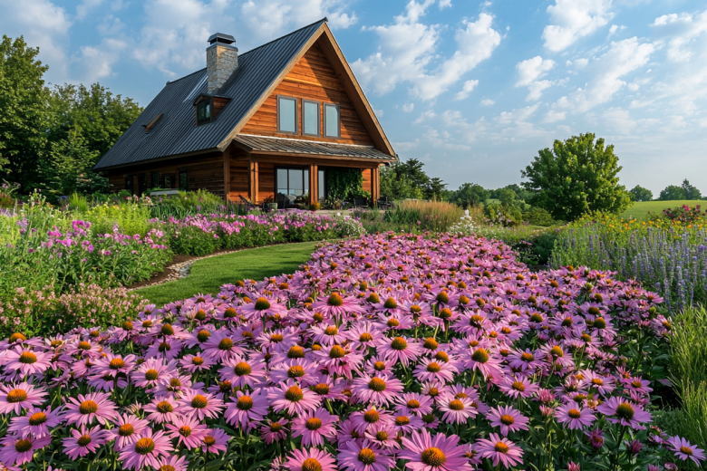 Для сада в зоне с сильными ветрами и обильными дождями идеально подойдет эхинацея пурпурная — выносливый и очень декоративный многолетник, который будет цвести даже в таких экстремальных условиях.
