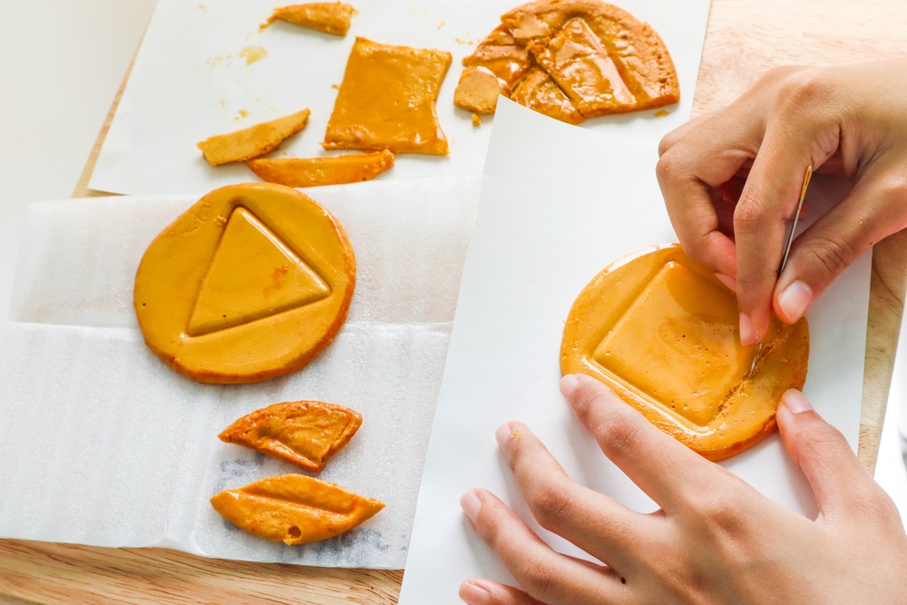 Сахарные соты из «Игры в кальмара» были частью конкурса. Участникам предстояло за ограниченное время вырезать иголкой силуэт из сахарной соты. Попробуйте!
