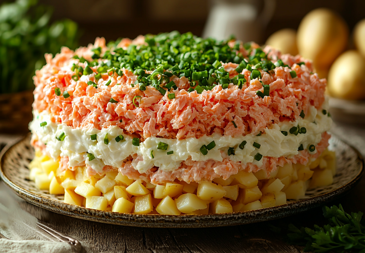 Салат «Аристократ» с крабовыми палочками и тунцом! Слоеная закуска понравится всем! Элегантный и сытный салат, который сочетает в себе нежную текстуру крабовых палочек, пикантность тунца и насыщенный вкус картофеля и яиц. Идеальное блюдо для праздничного стола или ужина в кругу семьи. Простота приготовления и изысканный вкус делают этот салат настоящим фаворитом!