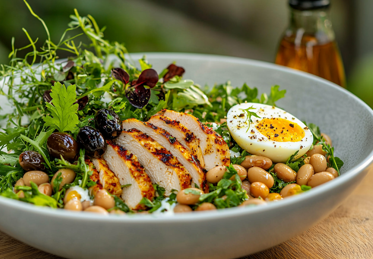 Салат для похудения с курицей и белой фасолью! Готовится быстро, насыщает надолго. Этот сытный и полезный салат — идеальный вариант для тех, кто следит за питанием, но не хочет жертвовать вкусом. Богатый белком, с насыщенным вкусом и приятной текстурой, он станет отличным обедом или ужином.
