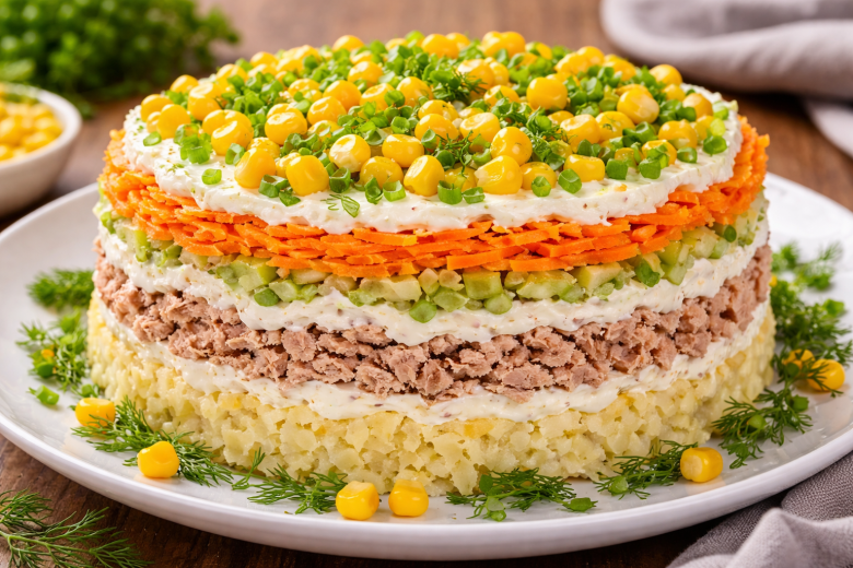 Этот салат с тунцом и кукурузой — отличный вариант, когда хочется чего-то легкого, но с насыщенным вкусом. Простые ингредиенты, минимум усилий, а получается сочный, нежный и сбалансированный салат, который подойдет и для ужина, и для гостей.