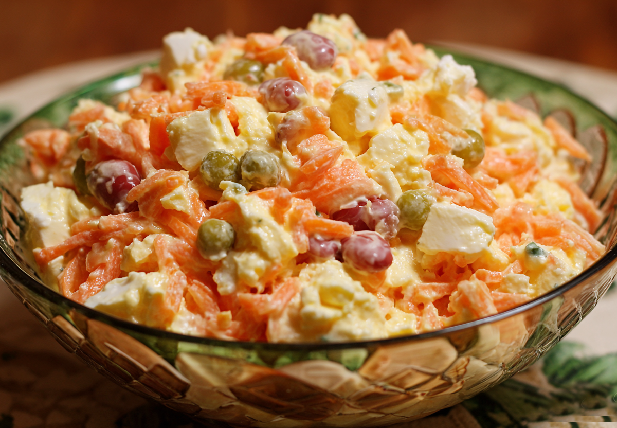 Если нужен салат, который подойдёт и для праздничного стола, и для простого ужина, обратите внимание на «Дружбу». Он напоминает оливье, но готовится из более доступных ингредиентов и остаётся таким же сытным и нежным.