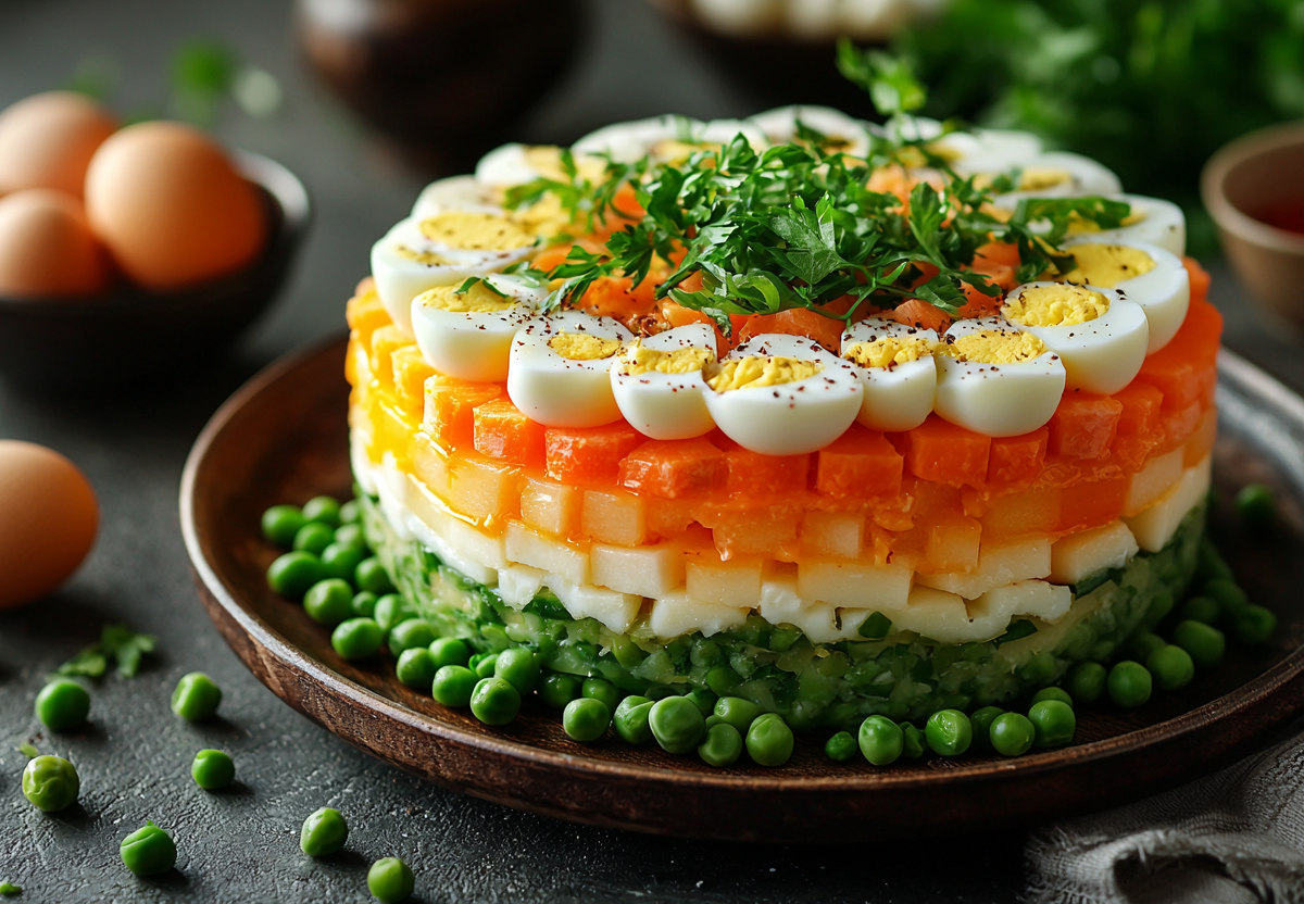 Салат «Французский» — готовим на скорую руку, а получается изысканно и очень вкусно! Этот слоёный салат покорит вас сочетанием свежих яблок, нежных яиц и сыра. Он готовится быстро, выглядит эффектно, а вкус — просто восхитительный!