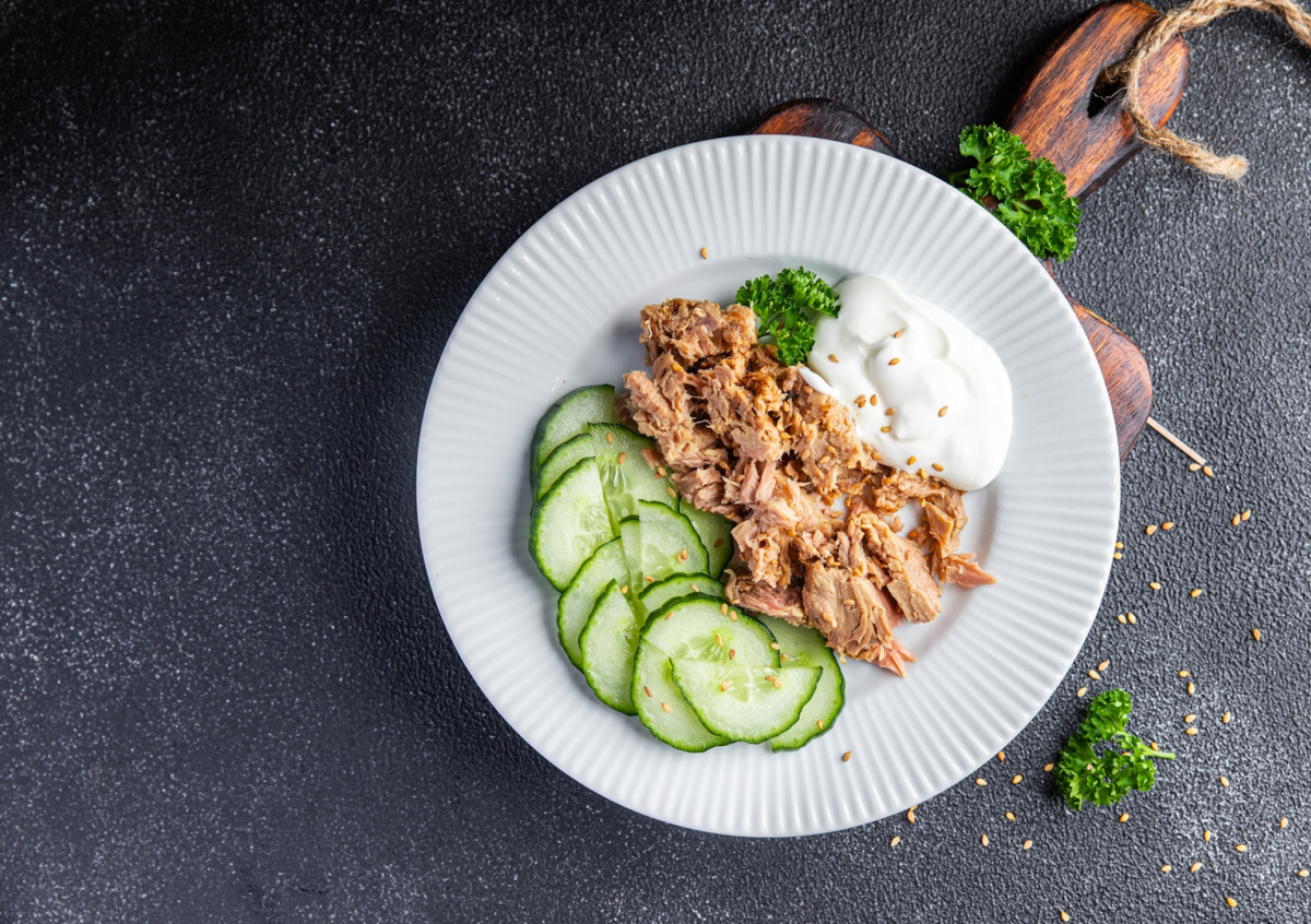 - Рыбные консервы (тунец, скумбрия или другие по вкусу) — 1 банка