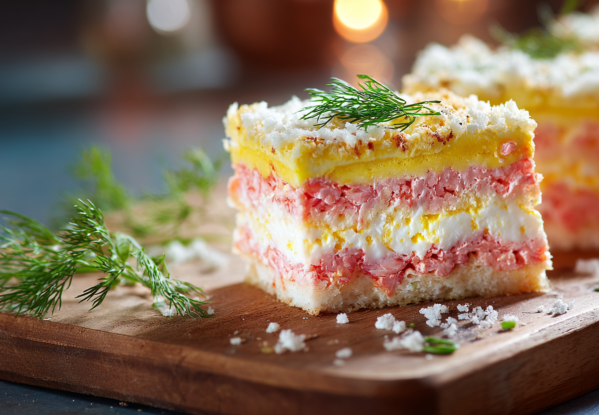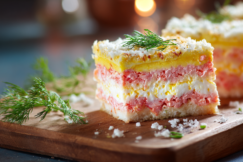 Иногда самые простые блюда оказываются самыми эффектными. Этот салат готовится буквально из трех основных продуктов, но за счет необычной подачи выглядит как праздничный торт. А на вкус — нежный, насыщенный и очень «домашний».
