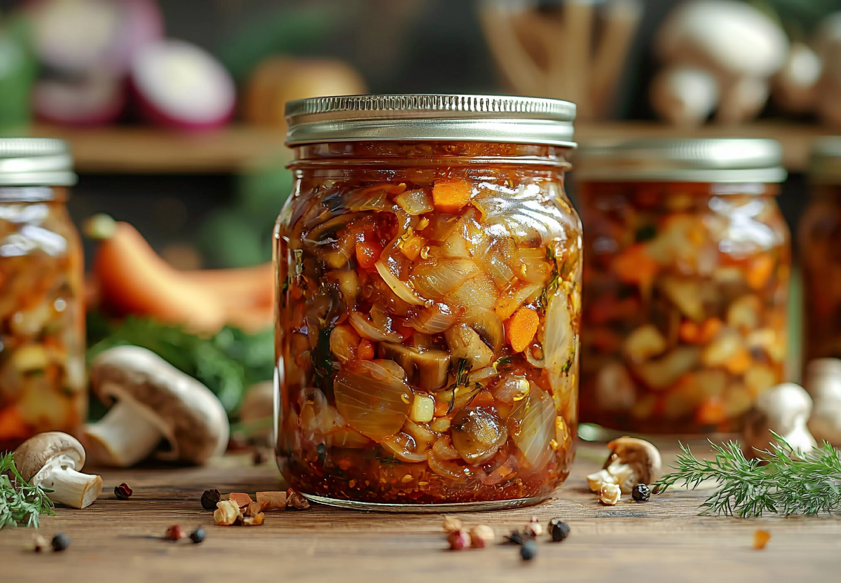Этот салат не требует стерилизации — грибы, жаренные в масле, и уксус гарантируют сохранность. Подавайте его с картофелем или как холодную закуску.