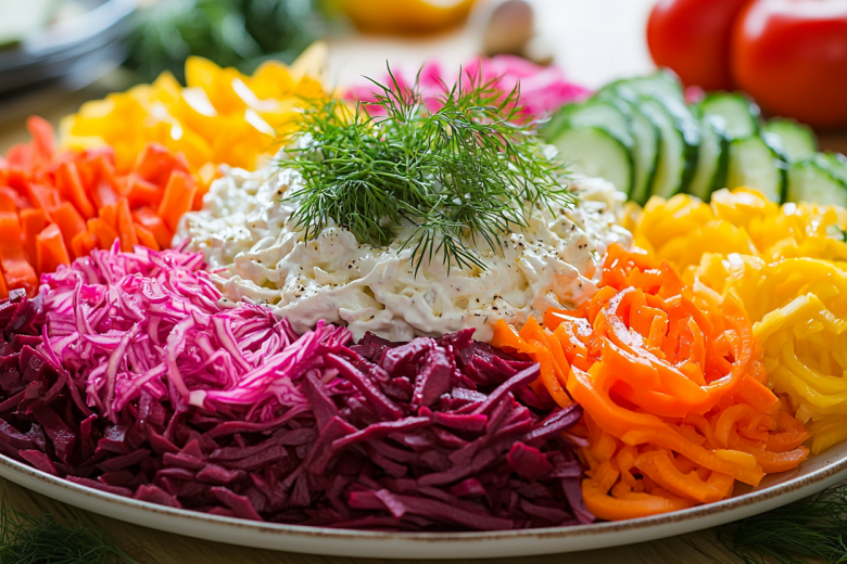 Салат «Костер» поражает не только внешним видом, но и богатством вкусов! Сочная говядина, хрустящие овощи и пикантный соус создают настоящую симфонию. Идеальное блюдо для праздничного стола — каждый ингредиент сохраняет свою индивидуальность, но вместе они образуют удивительную гармонию.