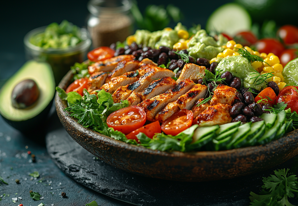 Салат «Мексика» с курицей и соусом из авокадо! Все его запомнят и попросят рецепт. Этот салат — взрыв вкусов и текстур! Нежное куриное филе с пряными специями, хрустящие овощи, питательная фасоль и кукуруза в сочетании с невероятно сливочной заправкой из авокадо. Идеальный баланс сытности и свежести — то, что нужно для полезного обеда или ужина!