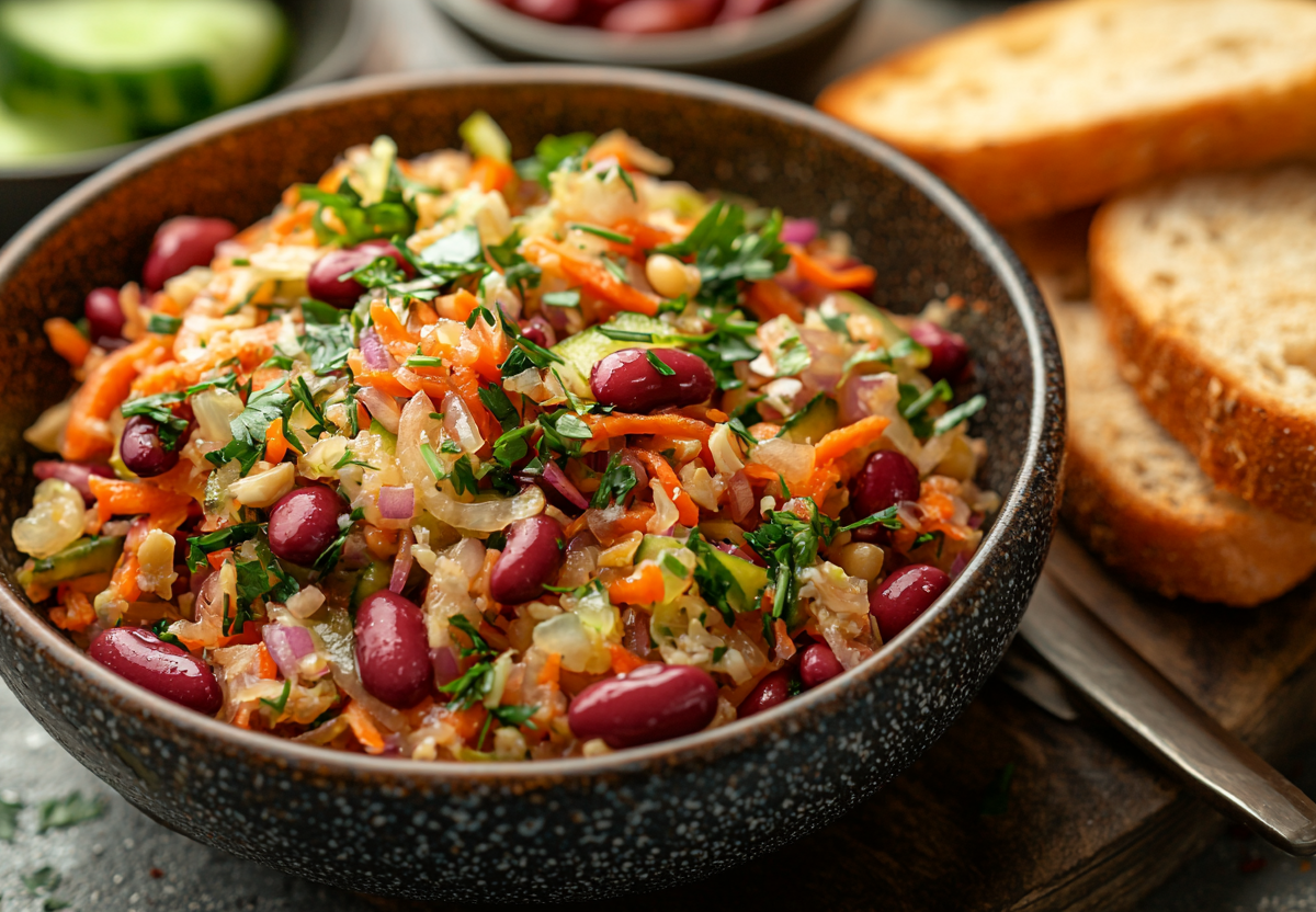 Салат «Мужской» без мяса и майонеза: поджарка и огурчики в нем сводят с ума