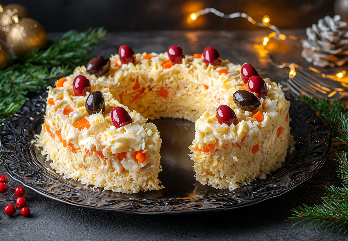 Приготовьте салат «Подкова» на удачу в 2026 году — он вкусный, сытный, символичный и готовится без слоев — все смешал и красиво уложил на тарелку.