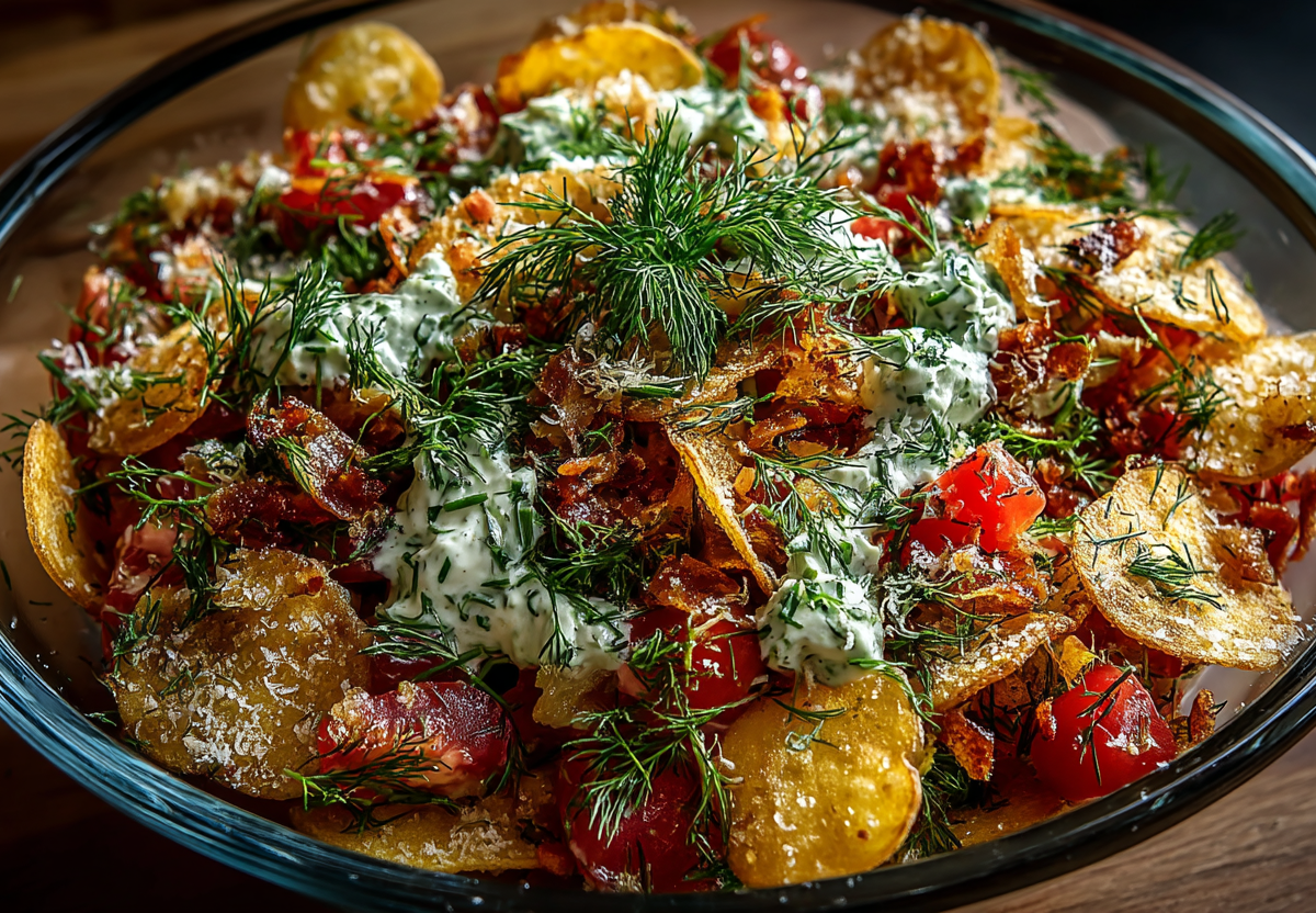 Самый гениальный ход в этом рецепте — чипсы вместо сухариков или вареной картошки. Не нужно ничего сушить в духовке или варить. Просто открываешь пачку, и у тебя уже есть идеальный, обезжиренный хрустящий компонент с собственной дозой соли. Это кулинарный хакинг, решение уровня «почему я не додумался до этого раньше».