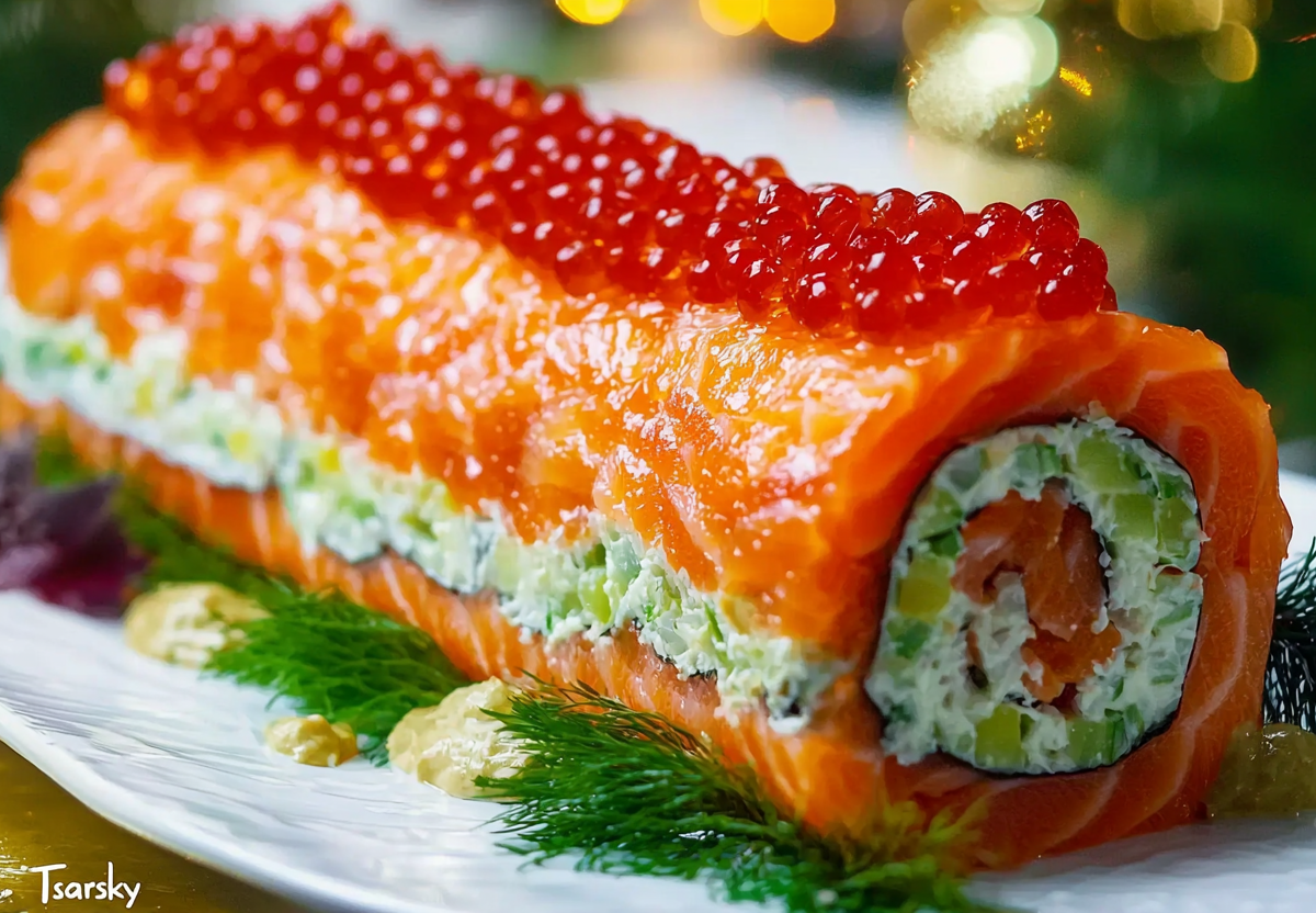 Салат-рулет «Царский» — королевское украшение на новогодний стол. Хитовый праздничный рецепт, который понравится всем. Когда хочется создать по-настоящему праздничное и изысканное блюдо, этот салат станет идеальным решением! Сочетание нежной слабосоленой форели, питательных овощей и благородной красной икры создает неповторимую симфонию вкуса. Такой салат не просто украсит ваш новогодний стол — он станет его главной жемчужиной, от которой придут в восторг даже самые искушенные гости.