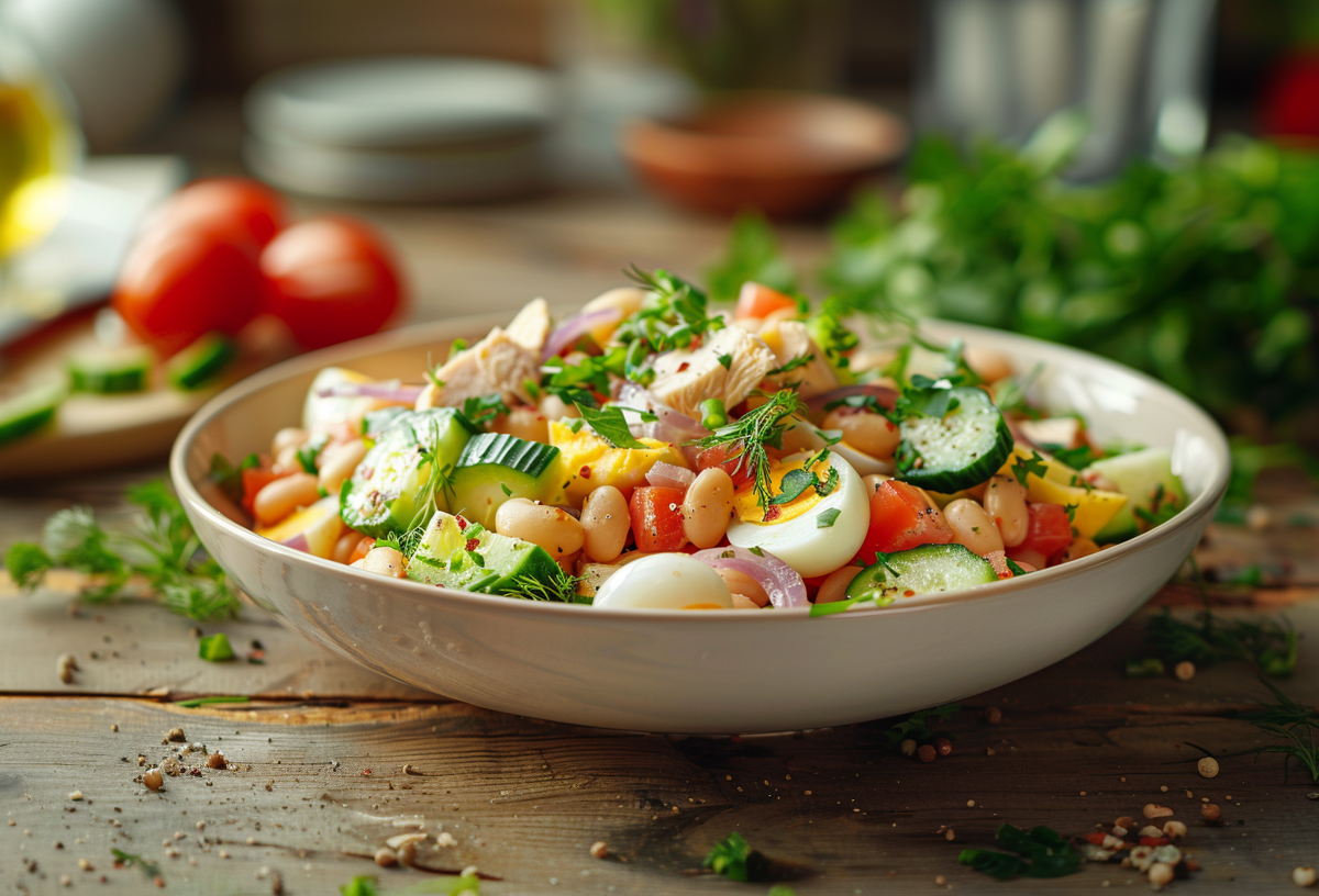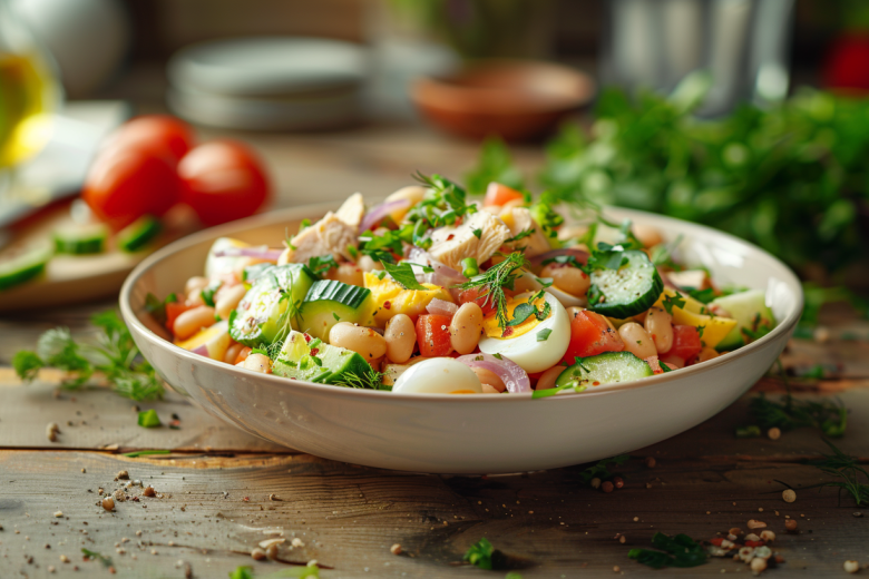 Этот салат хорош тем, что легко подстраивается под любой вкус и ситуацию. Он получается сытным за счет курицы и яиц, но при желании можно сделать его более легким, просто изменив заправку. Отличный вариант и для будней, и для быстрого ужина.