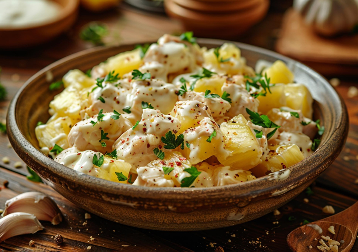 Иногда хочется чего-то вкусного, но без долгой готовки, — и этот салат именно такой. Он получается легким, сочным и с приятной сладкой ноткой ананаса. Отличный вариант и для ужина, и для быстрого перекуса.