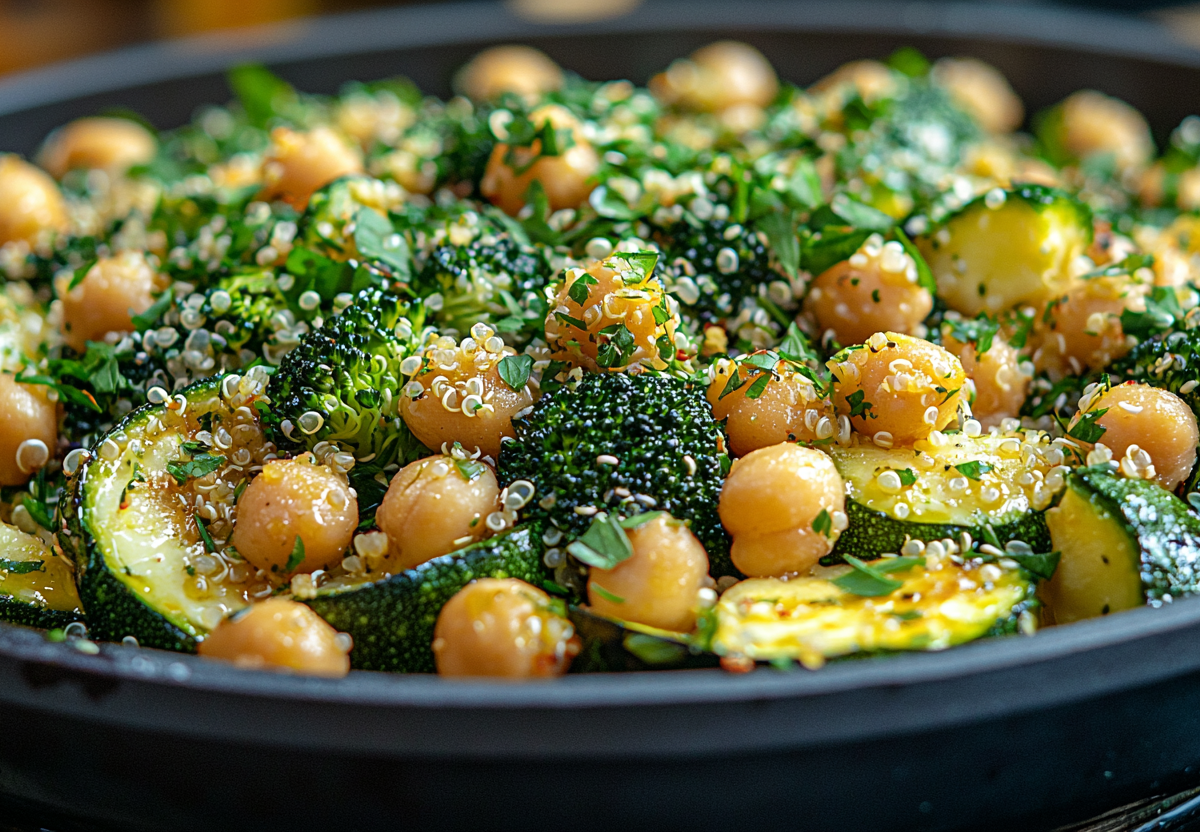 Предлагаем вам приготовить салат с запеченными брокколи и кабачком! Попробуйте этот витаминный взрыв! Хрустящие запеченные овощи, питательное киноа и пикантная заправка с тахини создают идеальный баланс вкусов и текстур. Отличный вариант для полезного перекуса или легкого ужина.