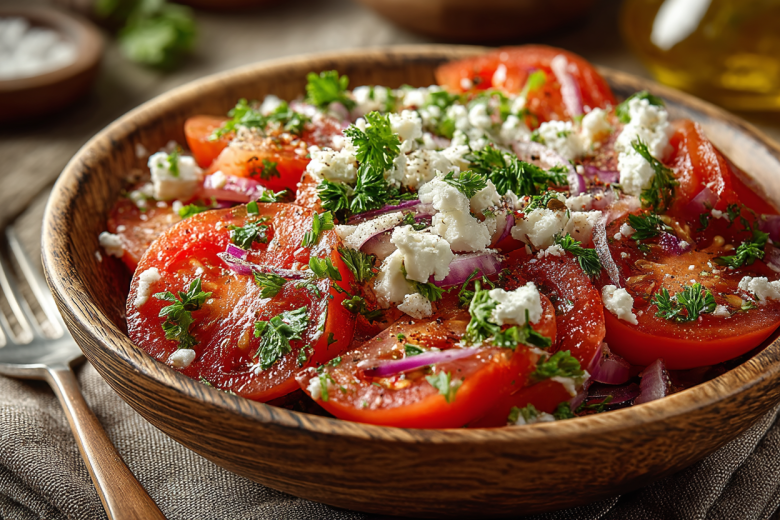 Необычный салат с помидорами и зерненым творогом — это простое, но бесподобно вкусное блюдо, которое удивит вас своей свежестью и яркостью.