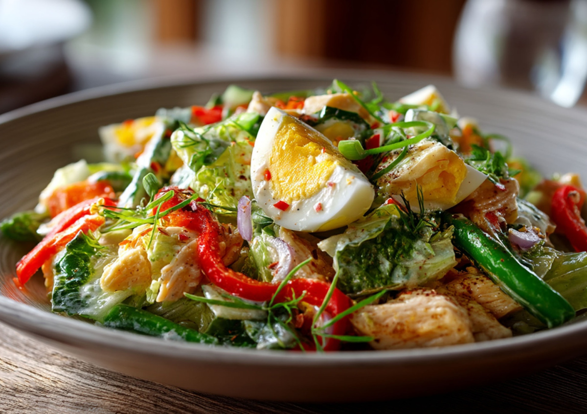 Этот салат полностью оправдывает свое название — он получается легким, ярким и очень свежим на вкус. Хрустящая пекинская капуста, сочная куриная грудка и разноцветный болгарский перец создают гармоничное сочетание, которое отлично подходит и для семейного ужина, и для праздничного стола. Особую изюминку блюду придает маринованный лук и ароматная чесночная заправка.