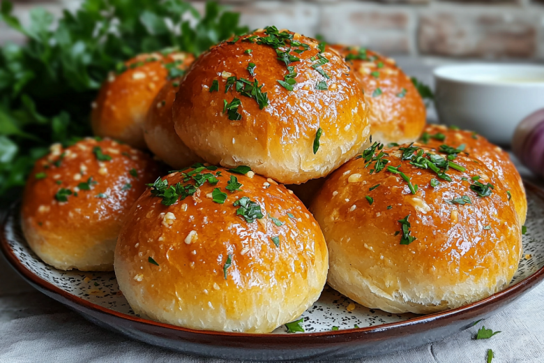 Для приготовления теста тебе понадобится: 450 граммов муки, 230 мл теплого молока, 2 яйца (оден желток для смазки), 7 граммов быстродействующих дрожжей, 4 столовые ложки растительного масла, 20 граммов сахара и 1 чайная ложка соли. Сначала приготовь опару: смешай 50 граммов муки, дрожжи и сахар с теплым молоком и оставь на 10 минут. Затем в большую миску просей оставшуюся муку, влей опару, добавь яйца, растительное масло и соль. Замеси гладкое, не липнущее к рукам тесто, убери его в смазанную маслом миску, накрой и оставь в тепле на час-полтора, пока оно не увеличится в объеме. Пока тесто подходит, приготовь начинку и соус. Натри на терке 150–180 граммов твердого сыра (например, моцареллы) и смешай его с 2–3 измельченными зубчиками чеснока и мелко нарубленной зеленью (петрушка или укроп). Для ароматной пропитки смешай 2–3 зубчика чеснока, измельченную зелень и пару столовых ложек растительного или растопленного сливочного масла. Подошедшее тесто обомни, раздели на части весом около 50 граммов и раскатай каждую в лепешку. В центр каждой положи сырную начинку, края защипни, формируя аккуратные шарики. Выложи булочки швом вниз на противень, дай им расстояться 15–20 минут, смажь взбитым желтком с молоком и выпекай в разогретой до 200 °C духовке. Первые 15 минут пеки при 200 °C, затем убавь до 180 °C и допеки до румяности (еще около 10 минут). Готовые горячие булочки щедро смажь чесночным соусом.