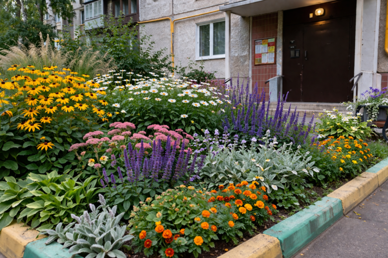 На практике лучше всего работают проверенные многолетники и простые однолетники — те, что не жалко, но выглядят эффектно.