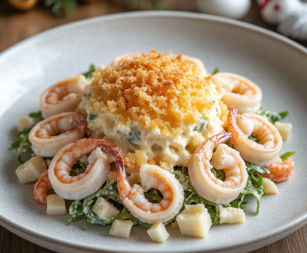 Этот салат — воплощение зимней свежести и праздничного настроения. Нежные, правильно приготовленные кальмары, хрустящие свежие овощи и облако тертого сыра создают изысканное и очень легкое блюдо, которое станет жемчужиной новогоднего стола. Секрет — в контрасте текстур и чистоте вкусов, где ни один ингредиент не перебивает другой, а лишь дополняет общую гармонию.