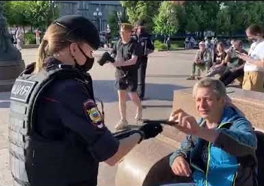 Инцидент произошёл вечером 1 июля. Жители Москвы вышли на акцию против поправок на Пушкинскую площадь. В центре столицы собрались сотни человек, также пришли не менее 100 журналистов, чтобы снять митингующих оппозиционеров. Вдруг камеры прессы перестали снимать протесты и переключили своё внимание на стройную девушку — сержанта полиции. Она ходила между людьми и раздавала медицинские маски со словами беречь своё здоровье и соблюдать социальную дистанцию.