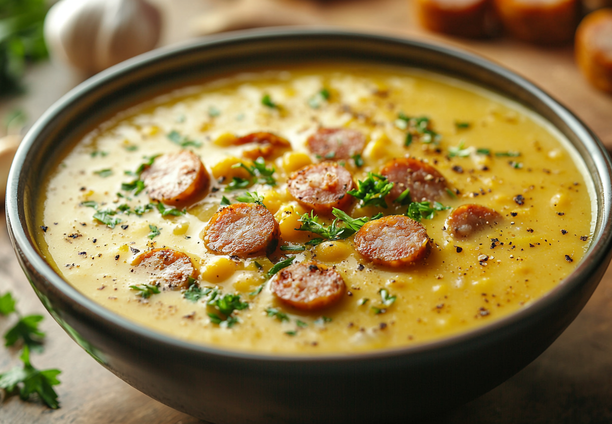 Самый простой и самый вкусный! Гороховый суп с копчеными колбасками. Нет ничего уютнее аромата настоящего горохового супа, наполняющего дом! Это блюдо — идеальный вариант сытного обеда. Особый шарм ему придают копченые колбаски, создающие неповторимый вкусовой букет.