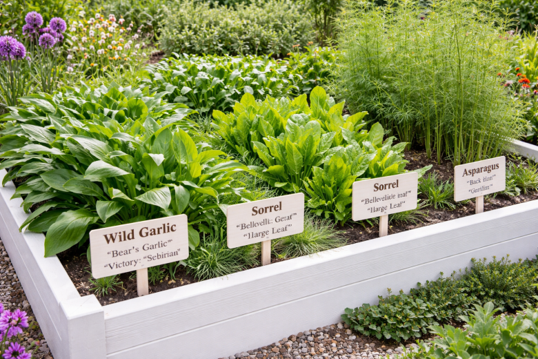 Щавель и спаржа отлично дополняют такую грядку. Щавель — простой и надежный, дает стабильную зелень несколько лет подряд: подойдут сорта «Бельвильский», «Малахит» и «Крупнолистный». Спаржа — более долгосрочная культура, но зато работает десятилетиями: хорошие варианты — «Гийнлим», «Баклим» и «Гролим», которые дают высокий и стабильный урожай.