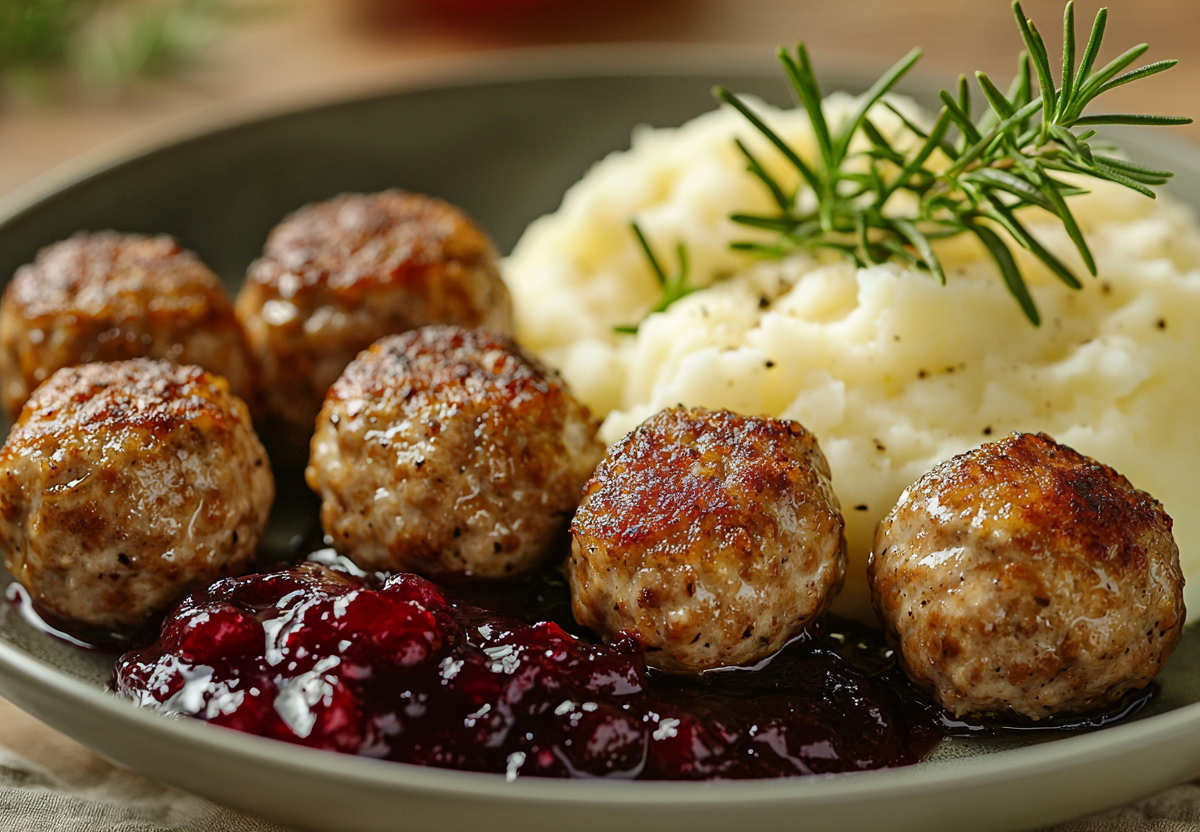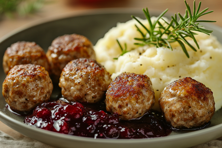 Секрет: для большой компании можно недоготовить фрикадельки на 5–7 минут — тогда при разогреве они останутся сочными. Подаю с картофельным пюре, сливочным соусом и брусничным джемом.
