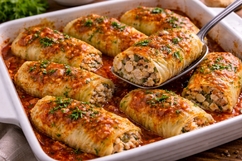 Эти голубцы получаются особенно мягкими, сочными и лёгкими. Вместо обычной капусты — нежные листья пекинской, а в начинке — мясо, грибы, творог и полуварёный рис. Готовятся просто, выглядят аппетитно и отлично подходят как для семейного ужина, так и для гостей.