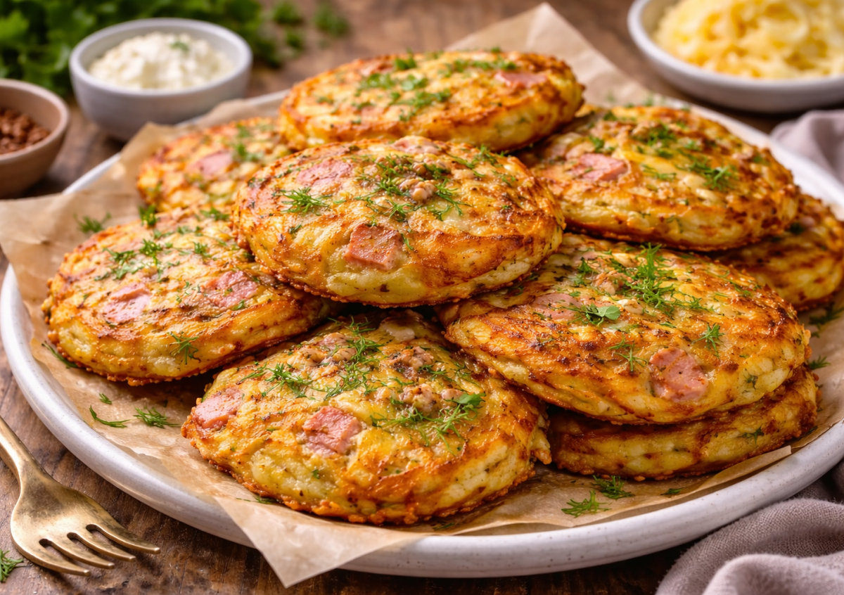 Семья захвалила меня за этот рецепт: драники с ветчиной, сыром и зеленью