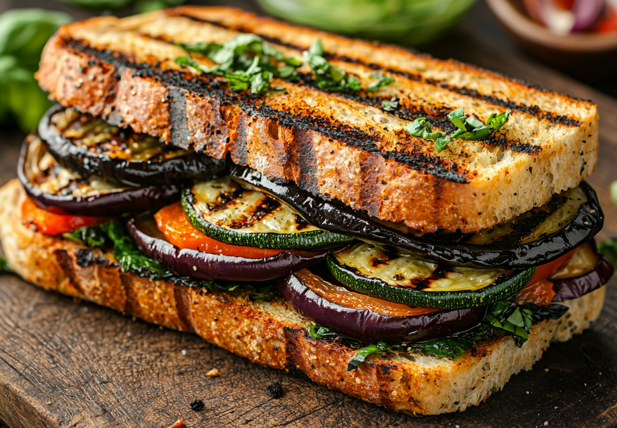 Сэндвичи с овощами гриль: необычный бутерброд, который понравится всем. Фишка в зеленом соусе. Хотите приготовить легкий и вкусный обед, который поразит яркими красками и ароматами? Эти овощные сэндвичи станут настоящим праздником вкуса! Они сочетают в себе нежность запеченных овощей, хруст цельнозернового хлеба и пикантность зеленого соуса. Идеальный вариант для полезного перекуса или легкого ужина.