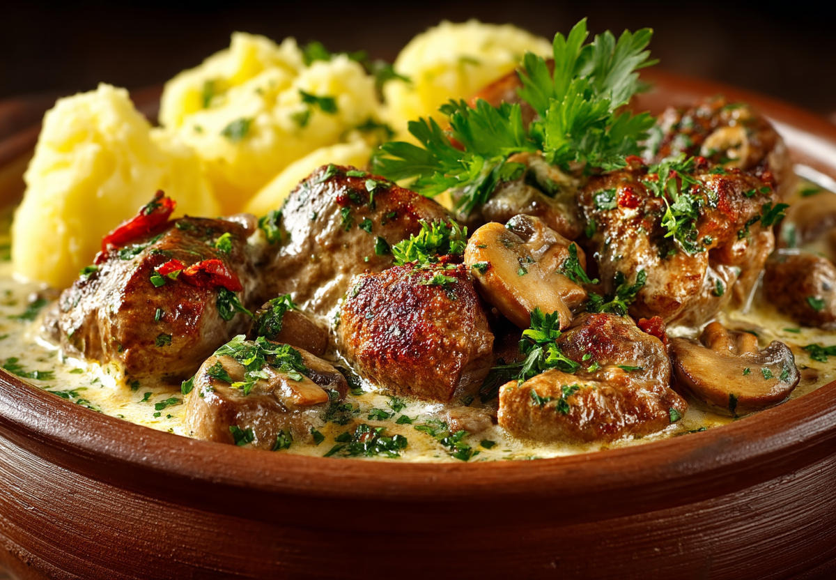 Куриные сердечки часто остаются за бортом кулинарных экспериментов — то ли забывают, то ли не знают, что с ними делать. А зря. В этом рецепте они раскрываются по-новому: долгое томление в сметанном соусе с грибами и специями превращает их в нежнейшее, тающее во рту блюдо, которое ничем не уступает дорогой вырезке. Бюджетно, но со вкусом ресторанного ужина.